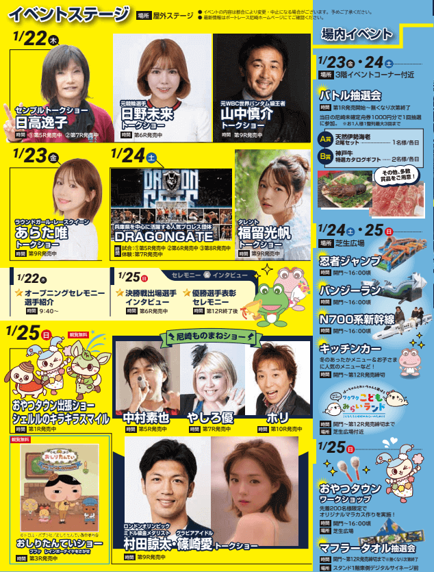 - マフラータオル抽選会(1/25):開門〜12R発売締切まで