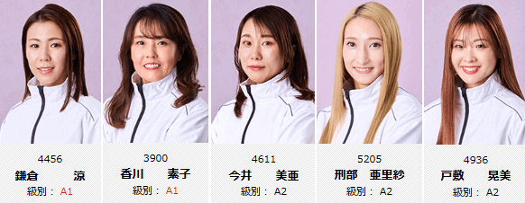 | 第5R(ランチタイム戦) | 1号艇にA級選手、他B級選手 |
