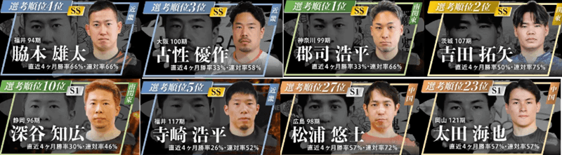 | SS | 107期 | 吉田拓矢 | 茨城 | 立ち回りと勝負強さで連覇圏内 |