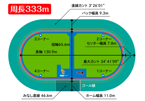 バックで出切る捲り、あるいは3番手・4番手からの捲り追い込みが有効で、番手だけでなく三番手の中割りや内突きも穴目として警戒したいバンクです。