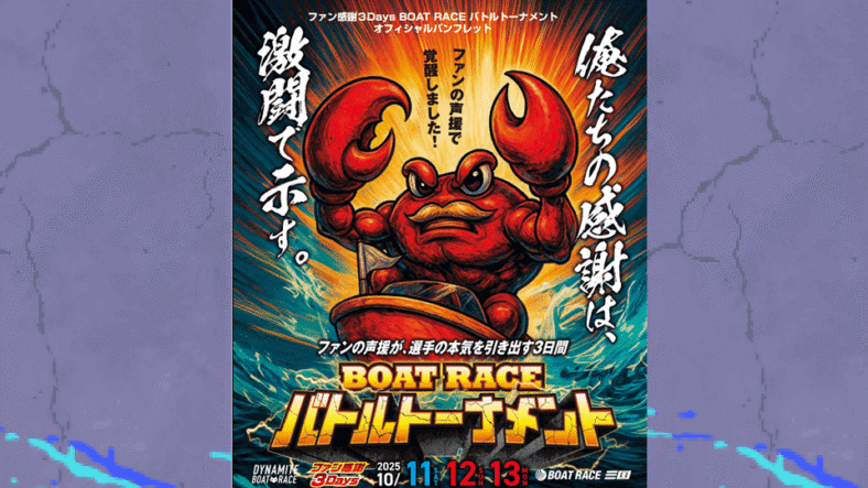 注目レース・イベント ファン感謝3Days2025三国|トーナメント方式を徹底解説【出場選手・注目モーター】 2025年10月11日~13日、ボートレース三国で開催される「ファン感謝3Daysボートレースバトルトーナメント」を展望。ルール解説、出場選手、注目モーター、イベント情報を総まとめ。 2025.09.29 注目レース・イベント