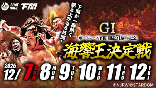 12月7日から始まる「開設71周年記念 GI海響王決定戦」は、ボートレース下関のナイターを舞台に、地元エース寺田祥を中心に強豪が激突する冬のビッグシリーズ。前回覇者・宮地元輝、直近G1を制した松井繁、下関巧者の馬場貴也・桐生順平・新田雄史ら豪華勢が集い、序盤のドリーム戦からハイレベルな攻防が展開される。バランス型でセンター勢の一撃も期待できる下関水面と、冬の北西風が絡むことで番狂わせも十分。イベントも連日開催される“観て良し・買って良し”の周年シリーズだ。