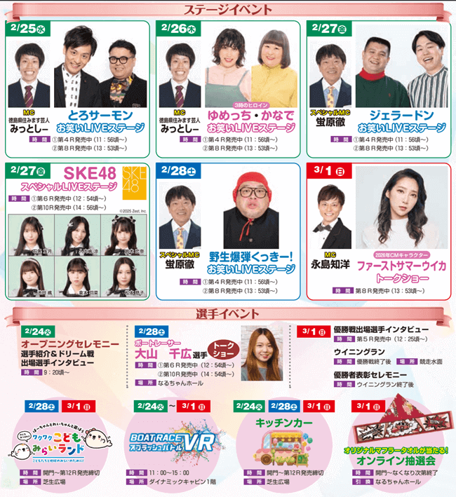 時間:第6R発売中/第10R発売中/なるちゃんホール - 3/1(日):ファーストサマーウイカ(MC:永島知洋)