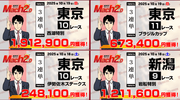 サイトで公開されている実績から、直近の高額的中例をピックアップ。