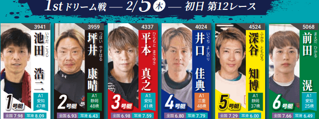 5 4524 深谷 知博 静岡 外枠でも展開を突ける安定派。舟券圏内十分。
