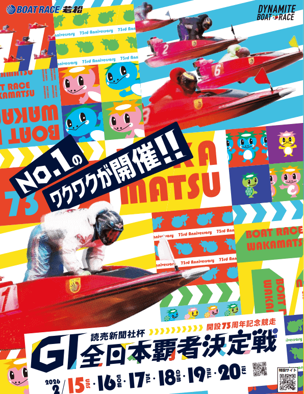若松GI「読売新聞社杯 全日本覇者決定戦(開設73周年)」は、2026年2月15日(日)〜20日(金)に開催。GP戦士12名、SG覇者23名が集結する一戦です。地元の主役・西山貴浩は大会連覇に挑み、白井英治・池田浩二・峰竜太ら遠征勢も虎視眈々。若松特有の潮位変化とモーター相場、さらにドリーム戦(初日・2日目)から優勝戦までの見どころ、イベント情報をまとめてチェックしていきます。