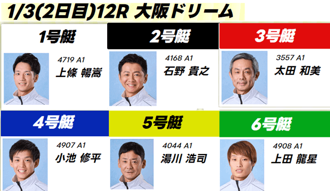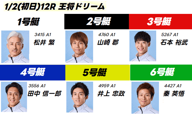 初日(1/2)第12R「王将ドリーム」出場予定